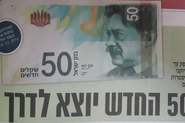 بعد مماطلة كبيرة ستصدر خلال الاسبوعين القادمين ورقة نقدية جديدة بقيمة 50 شيكل. الورقة الجديدة التي تشبه الى حد كبير الورقة النقدية بقيمة 20 شيكل وتحمل صورة الشاعر اليهودي شاؤول تشارنيخوفسكي وشجرة حمضيات، هذا وستبدأ التداول في فترة عيد رأس السنة العبرية وتستبدل الورقة النقدية الحالية التي استمر تداولها مدة 15 سنة.