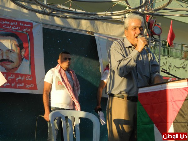 اما كلمة القوى الوطنية فالقاها فراس الحاج والذي قال نحيي ذكرى ابو علي مصطفى والذي كان مدافعاً عن ابناء شعبنا ليكون قمر الشهداء في كوكبة شهداء الوطن من القيادات العظام ابو عمار واحمد ياسين وعمر القاسم وفتحي الشقاقي ليكونوا جميعاً مناراً لخارطة عمل القوى الوطنية الفاعلة على ارض فلسطين، هذه الذكرى تبرز قيمتها الوطنية كونها متزامنة مع معركة البطولة والصمود في قطاع غزة واستمرار المواجهة ضد الاستيطان وهدم البيوت وتهويد القدس والاعتقالات التي طالت الجميع في الضفة الغربية، وهي هامة لما تحمله من مضامين الالتحام الوطني والذي تعبر عنه الوحدة الحقيقة وترجمة كافة الاتفاقات الداخلية الى افعال على الارض، داعياً الى الابتعاد عن سياسة الخلافات المدمرة ووقف حملات التحريض المتبادلة، مؤكداً عن ضرورة استمرار النضال حتى تحقيق اهداف شعبنا المتمثلة بالحرية والاستقلال.
