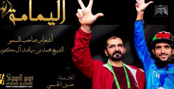 وحملت الاغنية اسم " اليمامة " وقال الجسمي عنها عبر صفحته الرسمية علي فيسبوك "اليمامة.. إهداء خاص مني لجميع معجبيني.. من أشعار الشيخ محمد بن راشد المكتوم، بمناسبة فوز ولي العهد الشيخ حمدان ببطولة العالم لسباق القدرة، ومن ألحاني وغنائي".