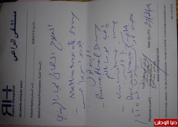 وينظر الوالد لابنته بحسرة العاجز ويقول : توجهت الى وكالة غوث وتشغيل اللاجئيين الفلسطينين"الاونروا" لم تقدم لي اي مساعدة في المرحلة الاولى الا انها اليوم تساعد بمبلغ "50 الف "ليرة لبنانية من اصل "150الف" ليرة لبنانية عن الجرعة الكيماوية الواحدة ، بينما تحتاج ابنتي الى فحص دم قبل كل جرعة تبلغ تكلفته 24"الف" ليرة لبنانية وبحاجة الى مراجعة الطبيب مرة في الشهر والذي تبلغ كشفيته 60" الف" ليرة لبنانية .