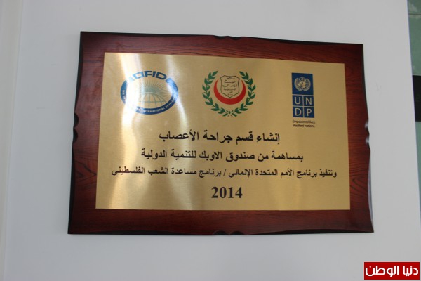 جدير بالذكر أن وحدة جراحة الأعصاب الحالية تم بناؤها تحت إشراف وكالة بيت مال القدس الشريف في المغرب، وبدعم من الحكومة الألمانية ممثلة بوكالة التعاون الألماني GIZ، وبمساهمة من صندوق الأوبك للتنمية الدولية.