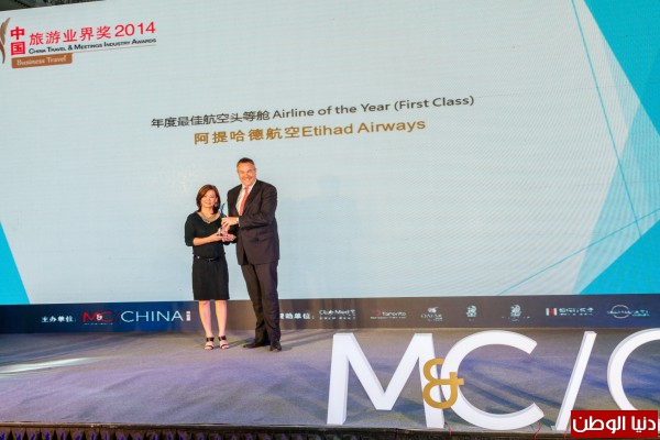 الاتحاد للطيران تفوز بجائزة مرقومة لخدمات الدرجة الأولى في الصين