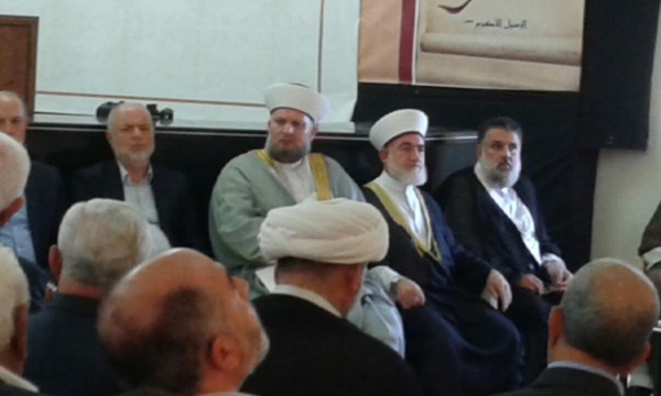 وكانت كلمة لمجلس علماء فلسطين تلاها الشيخ الموعد جاء فيها: بسم الله الرحمن الرحيم والحمد الله رب العالمين والصلاة والسلام على خاتم الأنبياء والمرسلين وعلى آله واصحابه أجمعين سيدنا وحبيبنا وقدوتنا محمد عليه أفضل الصلاة وأتم التسليم صلى الله عليه وسلم، بداية أتناول في الكلمة هذه رأي مجلس علماء فلسطين في لبنان، يؤكد المجلس على وحدة صف المسلمين ووأد الفتنة وتوجيه البوصلة نحو فلسطين تحت عنوان (( الآية الكريمة واعتصموا بحبل الله جميعا ولا تفرقوا))، كما يؤكد المجلس أن السنة والشيعة مسلمون تجمعهم عقيدة واحدة، وأن الإختلاف في الرأي لا يفسد للود قضية، وخاصة المسائل الفقهية التي تعتبر مدارس بحد ذاتها تحت عنوان إذا أصاب العالم فله أجرين وإذا أخطأ فله أجر، ويؤكد المجلس على حرمة دماء المسلمين وأموالهم وأعراضهم إمتثالا للحديث الشريف ((كل المسلم على المسلم حرام دمه وماله وعرضه))، والحديث الشريف(( لهدم الكعبة أهون عند الله من سفك دم مسلم))، كما يؤكد المجلس أن من يكفر الناس جزافا بغير وجه حق شرعي وخاصة المسلم فقد يبوء بها صاحب التكفير ((للحديث الشريف إذا كفر الرجل أخاه فقد باء بها أحدهما)) (والحديث من كفر مسلما فقد كفر)، والمعنى فيه عند أهل الفقه والأثر والسنة والجماعة، النهي عن أن يكفر المسلم أخاه المسلم بذنب، أو تأويل، لا يخرجه من الإسلام عند الجميع، وهذا قول الإمام أحمد (ولا يخرج الرجل من الإسلام شيئ إلا الشرك بالله العظيم أو برد فريضة من فرائض الله عزوجل جاحدا فيها )وقد قال في هذا الإمام ابن عبد البرّ كذلك، كما يؤكد المجلس على رأي العلماء الكبار في الإحتراز من التكفير كما قال القاضي أبو الفضل عياض في هذا الموضوع، فإن استباحة دماء المصلين الموحدين خطر، (والخطأ في ترك ألف كافر أهون من الخطأ في سفك دم مسلم واحد)، وهذا كذلك ما قاله الامام أبو حامد الغزالي (أن من قال لا إله إلا الله محمد رسول الله فقد عصم دمه وماله وعرضه) إمتثالا للحديث الشريف ((امرت أن أقاتل الناس حتى يقولوا لا إله إلا الله محمد رسول الله، فإذا قالوها فقد عصموا مني دماءهم وأموالهم إلا بحقها )) وهذا ما قاله كذلك القاضي الشوكاني في هذا الباب، وأكد عليه الإمام أحمد بن حجر الهيتمي حين قال، ينبغي للمفتي أن يحتاط في التكفير ما أمكنه لعظيم أثره وغلبة عدم قصده سيما من العوام، وما زال أئمتنا ويعني بذلك الإمام الشافعي على ذلك قديما وحديثا، وهذا ما عليه الإمام تقي الدين السبكي، عندما سئل عن حكم تكفير المبتدعة وأهل الأهواء، فأجاب التكفير هائل عظيم الخطر، من يقول فيه فكأنما أخبر أن مصيره في الأخرة جهنم خالدا فيها وهذا تجرؤ على الله وحرام، لأن من قال الشهادتين فهو معصوم الدم والمال والعرض، وهذا ما عليه الإمام الخميني، والسيد الخامنئي، والشيخ فيصل المولوي، والشيخ حسين وحيد الخراساني، والإمام السيد موسى الصدر، وعدد من كبار العلماء من السنة والشيعة قديما وحديثا، وفي هذا السياق لا بد ان نذكر فتوى السيد محمد حسين فضل الله رحمه الله تعالى لما فيها من شمولية، وهذا ما جاء فيها لما كان الاسلام مرتكزا على الاعتقاد بوحدانية الله تعالى، ونبوة رسوله محمد صلى الله عليه وسلم ومعاد الخلائق اليه عزوجل فان المؤمن بهذه الاصول الثلاثة يصير مسلما محترما النفس والمال والعرض، الحديث (كل المسلم على المسلم حرام دمه وماله وعرضه)، والمنكر لواحد منها بعد الايمان بها يصير كافرا مرتدا، وفقا لهذا فإن المسلمين أمة واحدة يتساوى أفرادها في الحقوق والواجبات مهمام تعددت مذاهبهم، ولقد جرى أئمة أهل البيت المعصومون عليهم السلام، ومعهم عامة الفقهاء المقتدين بهم على مدى العصور وحتى عصرنا هذا، على الافتاء والعمل سرا وعلنا بما يناسب هذه الحقيقة ويؤكدها في علاقاتهم الثقافية والاجتماعية بعامة المنتسبين الى المذاهب الاسلامية كافة فتعايشوا معهم وعلموهم وتعلموا منهم وتوارثوا وتزاوجوا وتناصروا، وذلك دون ان ينقص من قوة هذا الموقف ونصاعته، اختلافهم في العديد من ا