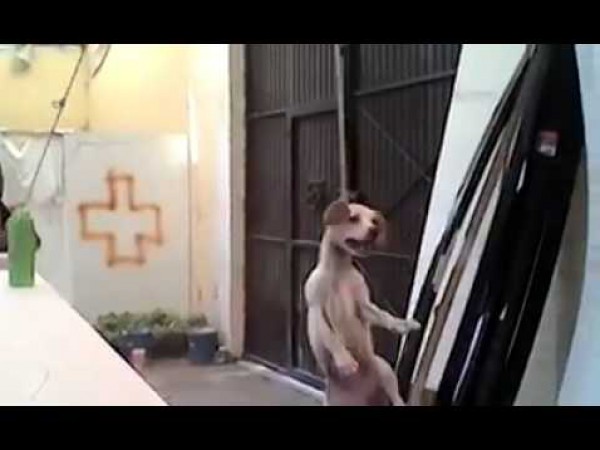 ويظهر في الفيديو شابان يؤرجحان الكلب بواسطة تعليقه بحبل مشنقة، ويمسك كل منهما سوطاً يضرب فيه ظهره، فيما يسمع أنينه المتواصل كأنه يحاول استعطافهما.