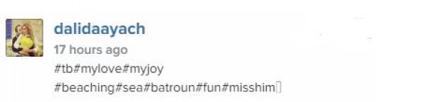 عبرّت داليدا عياش زوجة الفنان رامي عياش عن إشتياقها له ، حيث نشرت صورة تجمعها به ظهرت فيها وهي تعانقه في حوض السباحة، وكتبت داليدا تعليقًا على الصورة: “my love my joy beaching sea batroun fun miss him”.