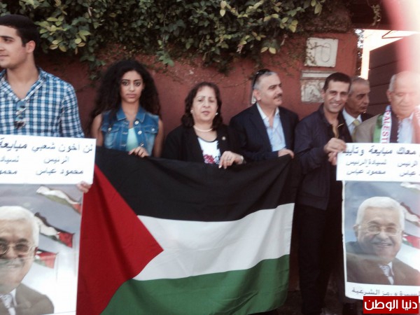 حيث رفع المشاركون الاعلام الفلسطينية وصور لسيادتة ويافطات وشعارات تؤيدة في خطوتة المهمة والمفصلية هذة . ويذكر ان تنسيقية اتحاد الجاليات الفلسطينية في ايطاليا قد بعث صباح اليوم رسالة تاييد لسيادتة تؤكد وقوفها ودعمها وتاييدها