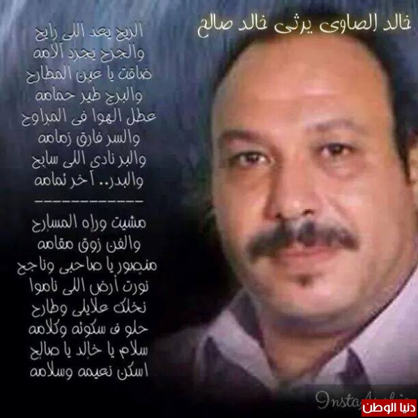 نعى الفنان خالد الصاوى، رفيق دربة الفنان الراحل خالد صالح، حيث رثاه بمجموعة من أبيات الشعر، كتبها الصاوى ونشرها مرفقة بصورة قديمة له مع الفنان الراحل، وذلك عبر صفحته على موقع التواصل الاجتماعى "فيس بوك".