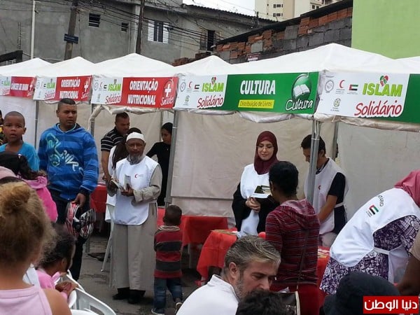 ن وتليف الكبد والسكر والكلسترول " ألعاب للأطفال، قص الشعر، إضافة لخيمات التعريف بالإسلام والثقافة الإسلامية، اتحاد المؤسسات الإسلامية في البرازيل بالتعاون مع مدرسة 24 مارس والهلال الأحمر الإماراني وسفارة دولة الإمارات في البرازيل لهم الشكر الكامل ولجميع من يساهم في هذا العمل الذي يبرز صورة الإسلام الحقيقية .