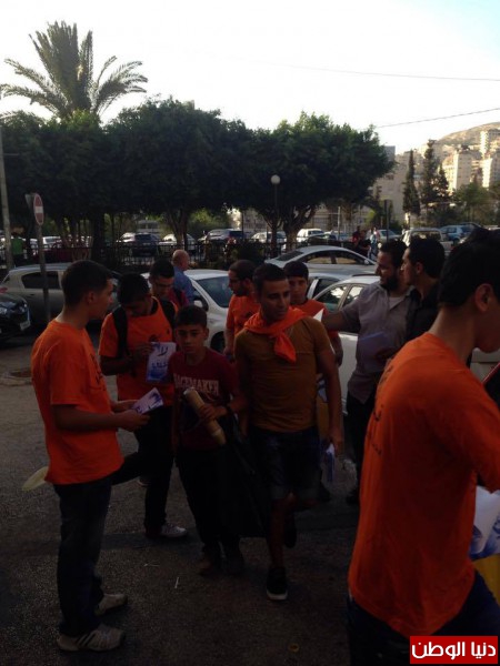 وجاب المشاركون شوارع المدينة والدوار حيث قاموا بتوزيع البوسترات على أصحاب المحال التجارية والبروشورات على المواطنين تطالبهم بالإستمرار بالمقاطعة وجعل خسائر الاحتلال أكبر من مكاسبه .