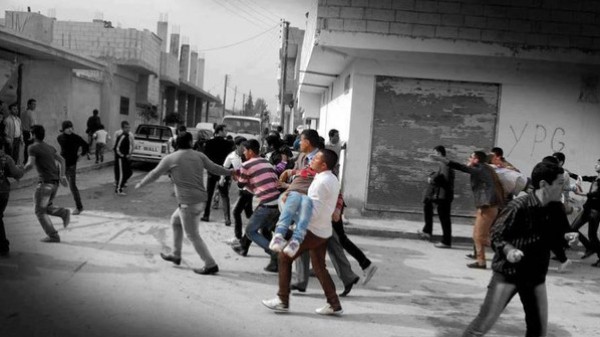 يتزامن ذلك مع استمرار نزوح الأهالي من مدينة عين العرب باتجاه الأراضي التركية، حيث تمنع السلطات هناك دخول السيارات والمركبات من الأراضي السورية، وتسمح فقط للأهالي بدخول أراضيها سيراً على الأقدام، لذلك تجمع مئات الأكراد السوريين على الشريط الحدودي قرب المنطقة العازلة وهي منطقة ألغام.