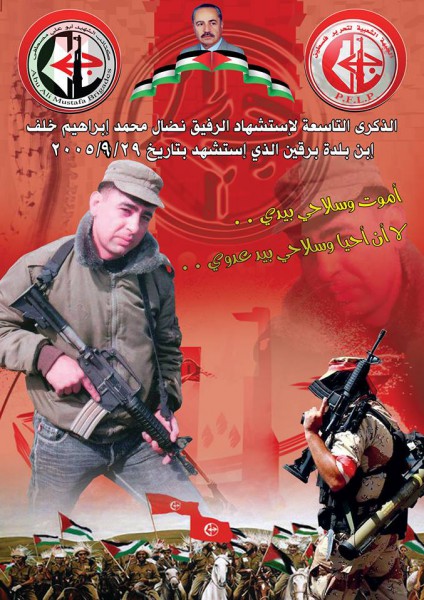 واشارت الجبهة الشعبية في بيان لها في هذه المناسبة انها تحيي الذكرى السنوية التاسعة لأستشهاد أحد ابرز مقاتلي كتائب الشهيد أبو علي مصطفى الشهيد المقاتل نضال خلوف الذي استشهد على ارض برقين الصمود أثر اشتباك مسلح خاضه الرفيق مع القوات "الصهيونية" الغازية في 2005/9/29، مؤكدة تعهدها بالسير على خطى الشهيد نضال حتى الحرية والنصر.