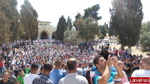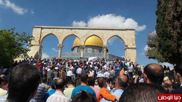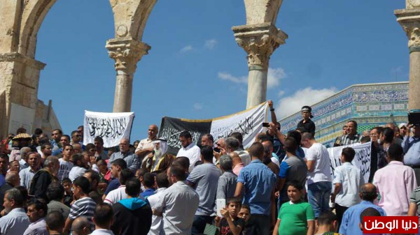 احتشد الآلاف في ساحات المسجد الأقصى بعد صلاة الجمعة من أنصار حزب التحرير لتوجيه نداء إلى المسلمين وجيوشهم لإقامة الدين ونصرة المسلمين وتحرير فلسطين،