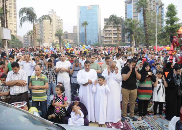 منتقبة تصلي وسط الرجال في صلاة العيد