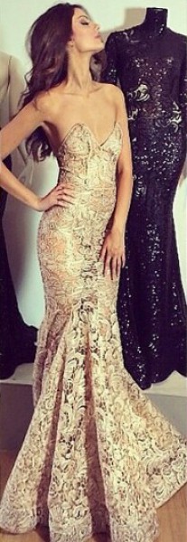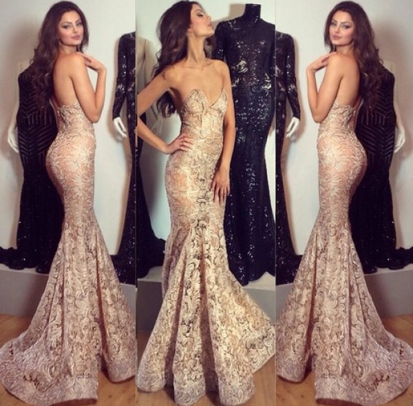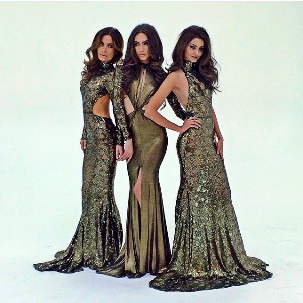 في الإطلالة تظهر ماهلاغا بثوب أسود طويل من التول، أما الإطلالة الثانية تتألق بثوب ذهبي لامع يبرز رشاقتها وسحرها، وفي الإطلالة الأخيرة ترتدي جابري ثوب ذهبي مائل إلى البرونز ضيق يصل إلى تحت الركبة.