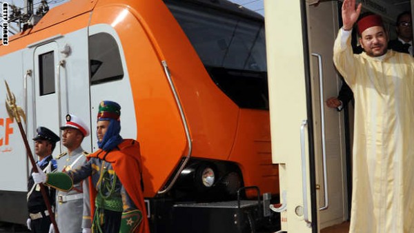 ولإشراف الملك المغربي على الاحتفالات أهمية في التقاليد المغربية حيث أنّ العاهل هناك يحمل لقب “أمير المؤمنين.” وفي الصورة الملك محمد السادس وهو ينتقل إلى المسجد لصلاة عيد الأضحى على متن القطار عام 2009