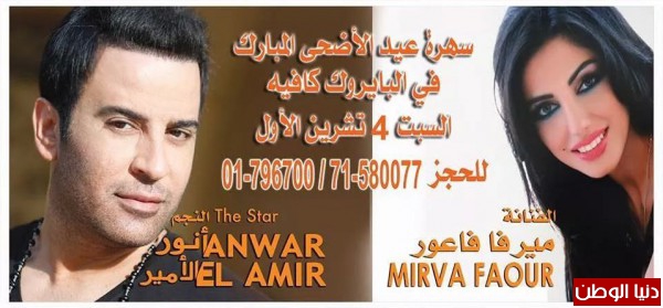 أحيت الفنانة ميرفا حفلة أول أيام عيد الأضحى المبارك في مطعم "البايروك كافيه" على شاطىء بيروت، وأبدت فرحتها بالنجاح الذي حققته، خصوصاً عندما ردد الناس معها أغنيتها الجديدة "مية ضربة" ورقصوا فرحاً وتفاعلوا مع الأغنيات التي أدتها خلال الحفلة التي شاركت فيها الفنان أنور الأمير.