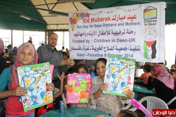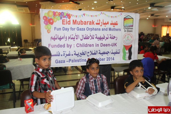 نظمت جمعية الفلاح الخيرية في فلسطين اليوم رحلة ترفيهية للأطفال الأيتام استهدفت 170 يتيما برفقة ذويهم من محافظات قطاع غزة وذلك بدعم كريم من مؤسسة أطفال في الدين في بريطانيا , وكانت الرحلة شيقة وجميلة حيث هلل الأطفال وذويهم تكبيرات عالية، كانت بمثابة صدى للفرحة التي غمرت قلوبهم رغم ما مروا فيه من ظروف نفسية بائسة إبان الحرب الأخيرة نفسيات دمرتها آلة الحرب .