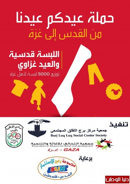 أطلقت مجموعة زغير للاستثمار حملة عيدكم عيدنا من القدس إلى غزة بعنوان" اللبسة قدسية والعيد غزاوي " وذلك بالتعاون مع جمعية مركز برج اللقلق المجتمعي، ونادي الموظفين في مدينة القدس المحتلة بتنفيذ من جمعية التحالف للإغاثة والتنمية في مدينة غزة .