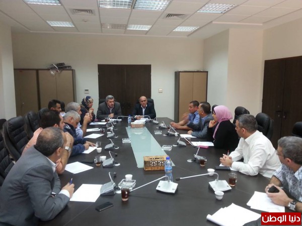 ترأس محافظ نابلس اللواء اكرم الرجوب في مكتبه اليوم الاربعاء الموافق 15/ 10/2014 اجتماعا لمناقشة موضوع تجاوزات بعض تجارالمنتجات الزراعية وقيامهم بتصدير بضائع زراعية اسرائيلية الى الاردن على انها منتج فلسطيني، وحضرالاجتماعمنسق المجلس التنفيذي للمحافطة اياد حموضه وممثلة عن دائرة الصحة والسلامة العامة بالمحافظة وممثلي كل من وزارة الاقتصاد الوطني،والضابطة الجمركية، ووزارة الزراعة، والشرطة، والمخابرات، وغرفة تجارة وصناعة نابلس