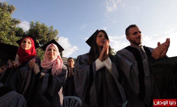 وفي كلمة الخريجين قالت الطالبة رندة غانم "لا أخفي عليكم مدى سعادتي اليوم، وأنا أقفأمام كوكبة من العلماء والمربين الأجلاء،أمام كل أم وأب، أمام أبي الحنون وأمي الطيبة، ها أنا اليوم أحقق حلمي وأتخرج من الجامعة، وأهدي لكم تفوقي فافخروا بي دائما،فأنا ابنتكم ابنةفلسطين"، وأضافت، "في هذه اللحظات نقبل أياديكم وهاماتكم، آبائنا وأمهاتنا، تحملتم معنا تعب السنوات، وكان لوقوفكم إلى جانبنا أعظم الأثر، كنا نرى في عيونكم انتظار هذا اليوم، فيدفعنا ذلك إلى السعي والاجتهاد حتى نصل إليه دون ملل أو كلل، فأنتم تستحقون منا كل شيء، فلم تبخلوا علينا بعطائكم يوما، فليست الحروف توفيكم حقكم، ولا الكلمات تصف جميلكم فنسأل الله أن يجازيكم عنا خير الجزاء".