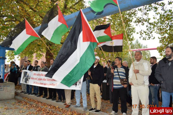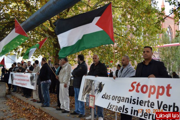 تعبيرا عن غضبهم لممارسات الاحتلال بالأقصى..الجالية الفلسطينية تحتشد امام وزارة الخارجية الألمانية