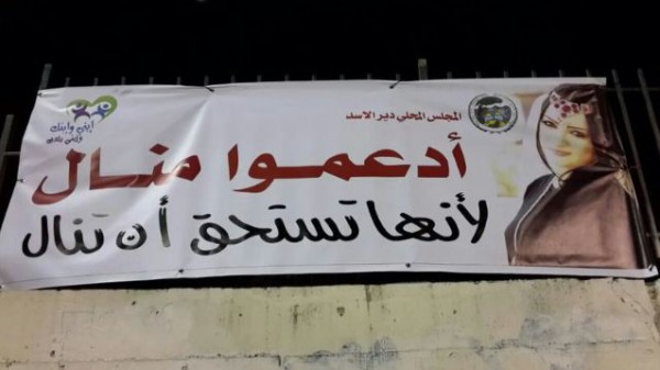 هذه المرة لم يكن الدعم لها من خلال الصور والتصويت، إنما رُفعت يافطات تحمل شعارات مؤيدة لها، تماماً كالمرشح على الإنتخابات. ومن بين الجمل التي رُفعت: "منال صوت وموهبة ومستقبل"، " ادعموا منال لأنها تستحق أن تنال"، " منال موسى تمثلنا تمثلكم ومثل شعبنا بأكمله".