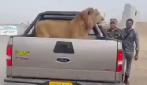 نشر فيديو على موقع "يوتيوب" يظهر مقاتلين عراقيين تمكنوا من الإمساك بأسد في صحراء محافظة صلاح الدين. وظهر الأسد وهو يقف داخل سيارة بكل هدوء دون تحرك، في حين عمد العناصر إلى التقاط صور معه.