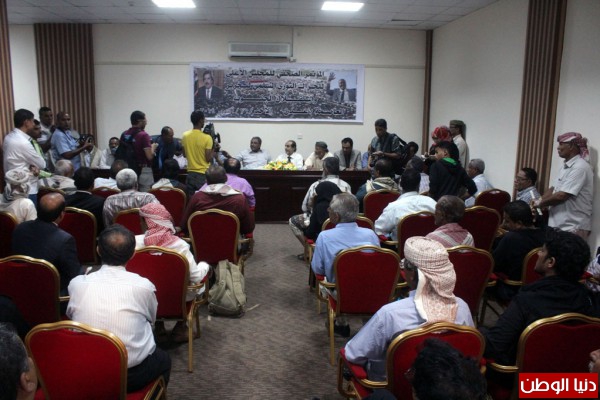 وانعقد المؤتمر في قاعة مغلقة بفندق "ميركيور"، وجلس في المنصة التي اعتلتها صورتا الرئيس الجنوبي علي سالم البيض والزعيم الأبرز في الحركة الاحتجاجية الشعبية المطالبة باستقلال الجنوب "حسن باعوم"، قيادات الجناحين الملتئمين، وحضر المؤتمر نشطاء وصحفيون.