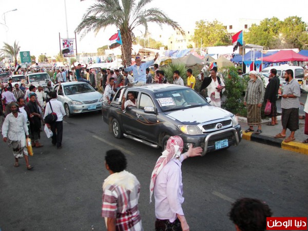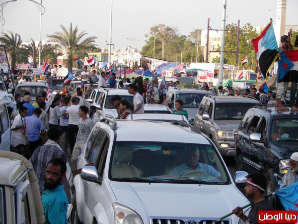 وقد وصلت قافلة الضالع إلى ساحة العروض الساعة الخامسة عصراً وسط ترحيب واستقبال حاشد من قبل المعتصمين الذين حيوا أبناء الضالع خاصة والجنوب عامة على تضحياتهم ودعمهم للثوار بساحات النضال والشرف .