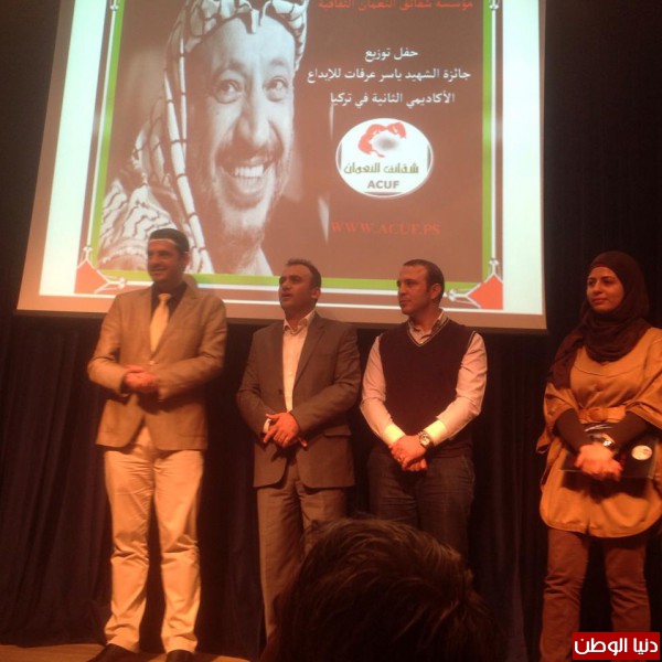 برعاية سعادة سفير دولة فلسطين بتركيا السيد نبيل معروف وبحضور المتحدث بإسم حركة فتح اسامة القواسمي نظمت مؤسسة شقائق النعمان الثقافية باسطنبول مهرجاناً ثقافياً تحت عنوان جائزة الشهيد ياسر عرفات للإبداع الاكاديمي حيث بدأ الحفل بالسلام الوطني الفلسطيني ودقيقة حداد علي ارواح الشهداء وتحدث سفير دولة فلسطين نبيل معروف "ابو رامي" واثني علي نشاطات المؤسسة واطلع الحاضرين علي الجهود السياسية التي يقودها الرئيس محمود عباس علي الساحتين الإقليمية والدولية مشيدا بالنشاطات الاكاديمية و الثقافية الابداعية التي تدعم طلبتنا وتجذر ثقافة شعبنا الفلسطيني الاصيل