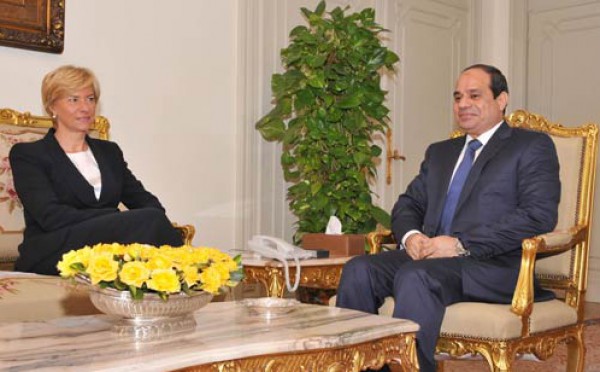 وصرح السفير علاء يوسف، المتحدث الرسمى باِسم رئاسة الجمهورية، بأن الوزيرة الإيطالية قد استهلت اللقاء بالإعراب عن خالص التعازى فى سقوط شهداء الحادث الإرهابى الغاشم فى شمال سيناء، وأكدت على رغبة بلادها فى تعزيز علاقاتها مع مصر فى كافة المجالات، وذلك ليس فقط لتاريخ مصر وحضارتها العريقة، وإنما أيضًا لمستقبلها الواعد وكونها محورا لتحقيق الاستقرار والسلام فى منطقة الشرق الأوسط والمتوسط.