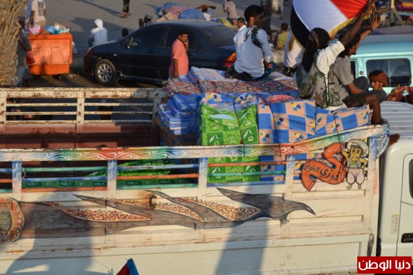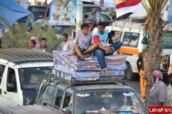 حيث وصلت أولى القوافل من أهالي منطقة لكمة لشعوب م/ الضالع مكونة من عشرات السيارات المحملة بالمواد الغذائية والتموينية، فيما كانت القافلة الثانية من أهالي منطقة اليزيدي بيافع .