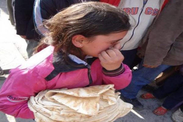 بالفيديو.. أطفال الرقة يتهافتون على رغيف خبز