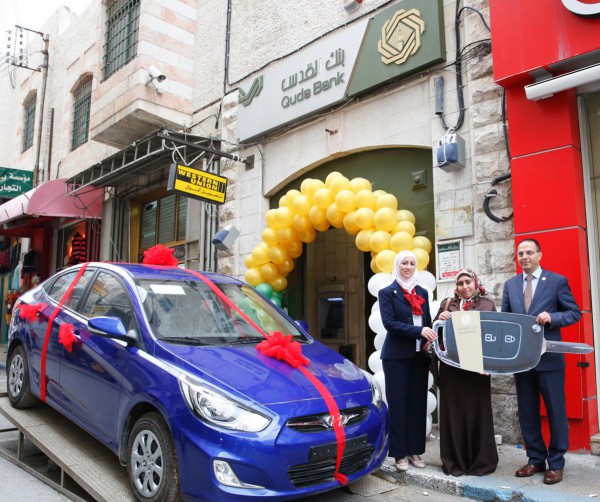 بنك القدس يسلم الفائزة لدى فرع نابلس سيارة هيونداي اكسنت 2014