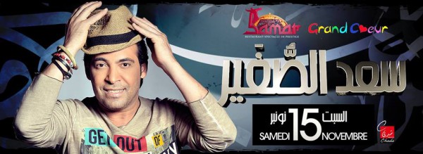 يستعد نجم الاغنية الشعبية سعد الصغير لحفل ضخم سيحييه بالمدينة الحمراء مراكش ( المملكة المغربية) خلال منتصف الشهر الجاري. الحفل من تنظيم شركة GRAND COEUR وسيقام في مطعم MUST ، وذلك مساء السبت 15/نونبر .