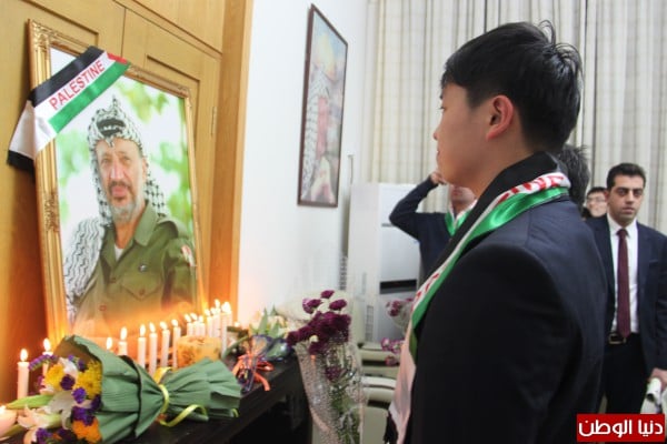 أحيت سفارة دولة فلسطين لدى جمهورية الصين الشعبية الذكرى العاشرة لرحيل الشهيد القائد الرمز ابو عمار ( ياسر عرفات) وذلك في مقر السفارة في بكين العاصمة الصينية بحضور القائم بالاعمال سعدي جابر وكادر السفارة وبمشاركة الطلبة من جامعات ( جامعة شنخوا وجامعة بكين ومعهد العلاقات الدولية جامعة العلوم والسياسة في الصين وجامعة التجارة الخارجية وجامعة اللغات ببيكن) وعدد من افراد الجالية الفلسطينية والطلبة الفلسطينيين المتواجدين في بكين.