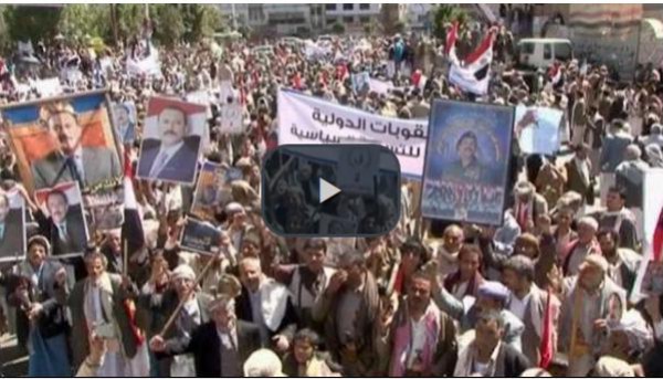 تظاهر آلاف اليمنيين من أنصار الرئيس السابق، علي عبدالله صالح، وحلفائه جماعة الحوثي، حيث احتشدوا في ميدان التحرير وسط صنعاء للتعبير عن رفض العقوبات المتوقع فرضها من مجلس الأمن ضد الرئيس اليمني السابق والقياديين الميدانيين لحركة الحوثي علي أبو الحاكم وعبدالخالق الحوثي. وطالب المتظاهرون بخروج السفير الأميركي والمبعوث الأممي جمال بن عمر من اليمن.