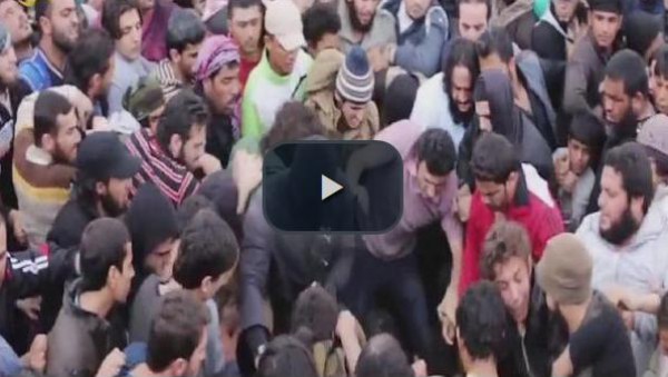 وعرض الناشطون على صفحة "مراسل سوري"، وهي مجموعة على موقع التواصل الاجتماعي على الإنترنت "فيسبوك" لنشر الأخبار عبر مراسلين محليين وناشطين إعلاميين، صورة اطلع عليها مراسل الأناضول"، قالوا إنها لمجموعة من أهالي الرقة وهم يركلون حتى الموت 3 جنود كانو أسرى لدى "داعش".