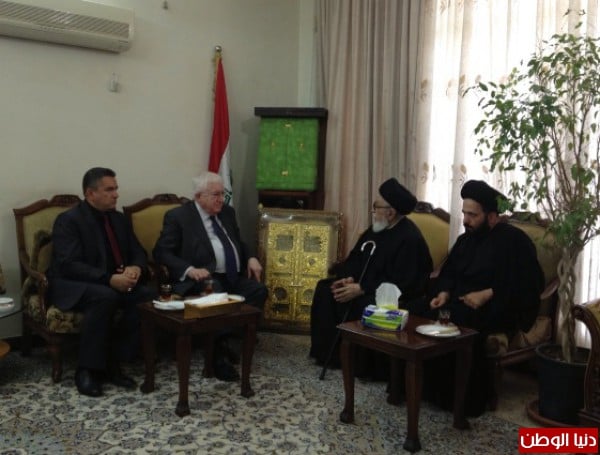 بعد ذلك توجه الرئيس معصوم الى مقر المرجع الديني السيد علي السيستاني للقاء به واكد معصوم ان توجيهات المرجع السيستاني جنبت العراق الكثير من المخاطر والمنزلقات.