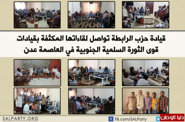 اليمن قيادة حزب الرابطة تواصل لقاءاتها المكثفة بقيادات قوى الثورة السلمية الجنوبية في العاصمة عدن 2014-11-13 رابط مختصر: تابعنا أيضا عبر انستجرام instagram/alwatanvoice رام الله - دنيا الوطن