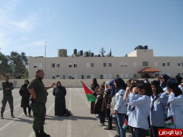 هيفاء قائد منطقة جنين وطوباس ومجموعة من الضباط وصف ضباط قوات الأمن الوطني الفلسطيني، ومن ثم توجه الزوار إلى معسكر قوات الأمن الوطني الفلسطيني "حرش السعادة" للاطلاع على كيفية تحية العلم، ورفع العلم.