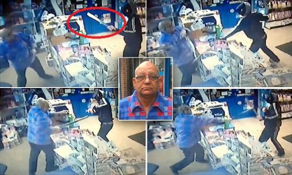 شاهد الفيديو .. كيف هزم بقال مسلم مسنّ مسلحاً حاول السطو على بقالته بإنجلترا