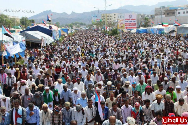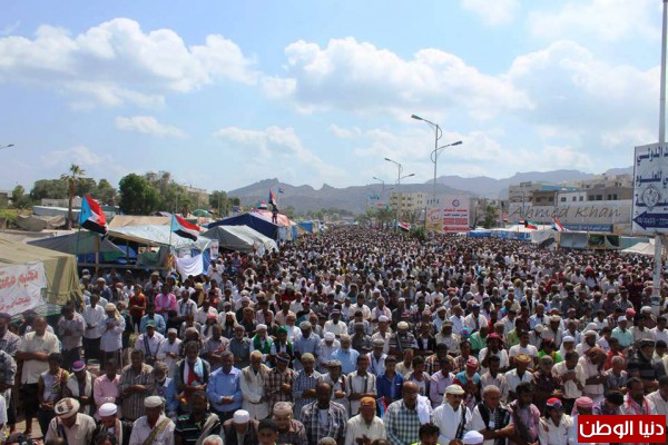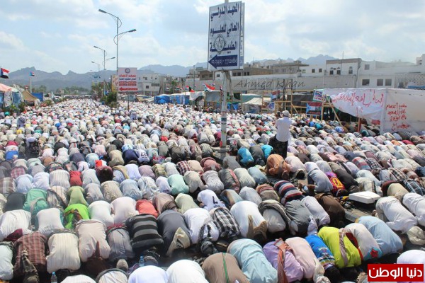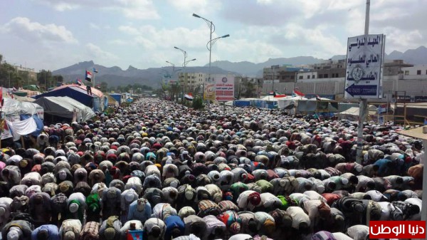 - وظهراً احتشد مئات الآلاف من ثوار الجنوب لأداء خطبتي وصلاة الجمعة التي اطلق عليها جمعة ( ماضون نحو التصعيد ) بساحة الاعتصام، والتي دعا خطيبها " المعتصمين على التوكل على الله والسير بخطى مدروسة وعليهم بالصبر والثبات..