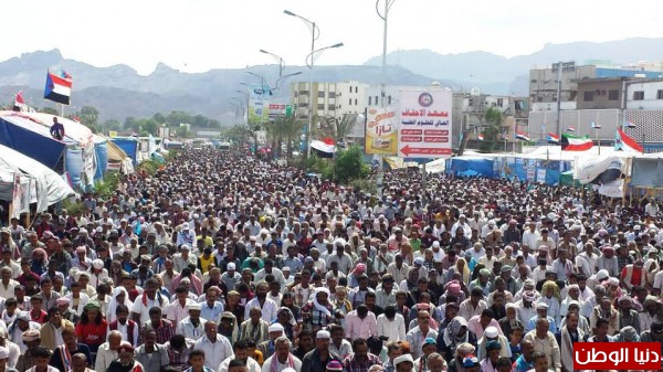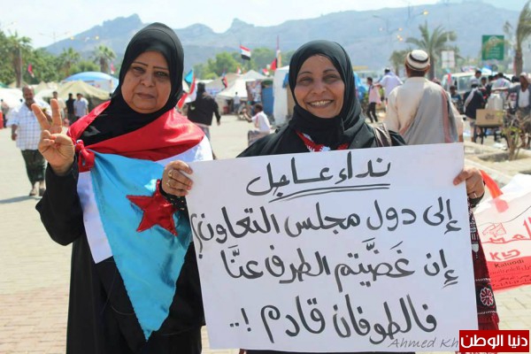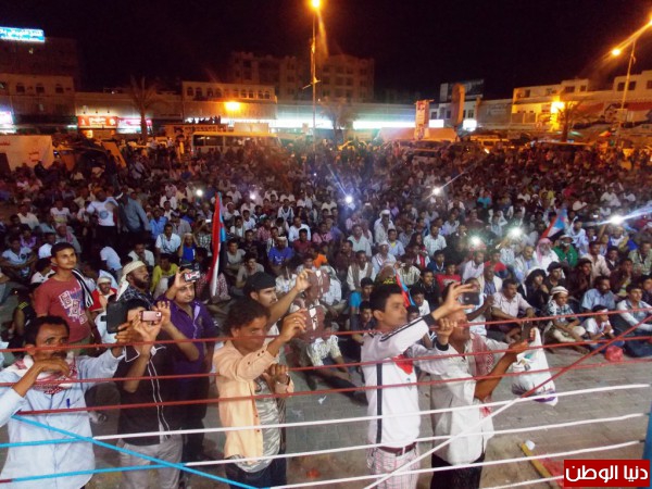 - ومن محافظة أبين وفدت إلى ساحة الاعتصام قافلة نسائية تؤازر المعتصمين، وزهرات مدارس أبين قدمن انشودة (انا طفل الجنوب) وقد ابدعن في تقديم هذه الانشودة .