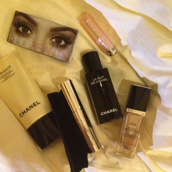 هذا وشاركت متابعيها من الجنس اللطيف سر جمالها ومنتجات المكياج التي تستخدمها والتي تتكون من "علبة رومش" منhudabeauty وغيرها من المنتاجت من أهم الماركات العالمية مثل ديور وشانيل.