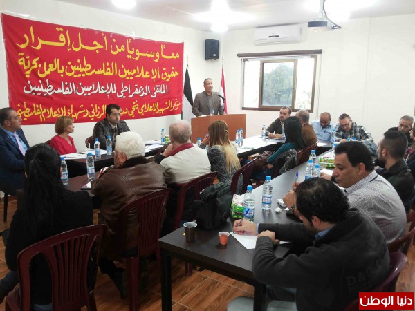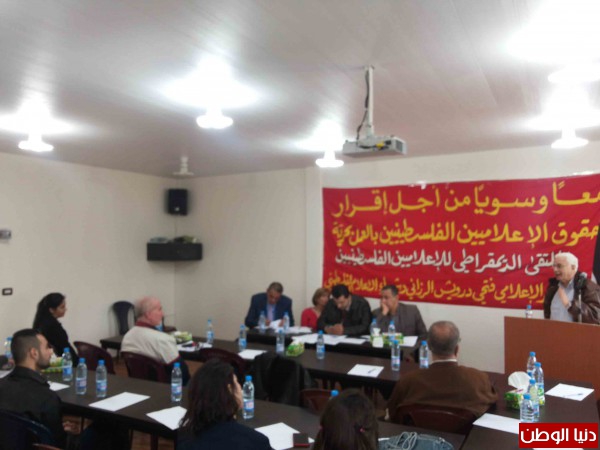 تحت شعار "معا وسويا من اجل إقرار حقوق الاعلاميين الفلسطينيين بالعمل بحرية" عقد الملتقى الديمقراطي للإعلاميين الفلسطينيين مؤتمره السنوي " مؤتمر الشهيد الاعلامي فتحي درويش الرزاينة وشهداء الاعلام الفلسطيني" في قاعة الشهيد القائد "ابو عدنان قيس" في مخيم مار الياس في بيروت بحضور عدد من العاملين في القطاع الاعلامي والصحفي..