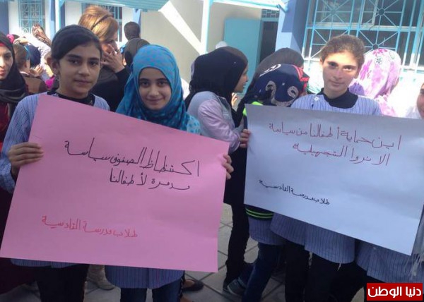 اللجان الشعبية والاهلية تنفذ اعتصامات فى كافة مدارس مخيمات صور رفضا لاكتظاظ الصفوف