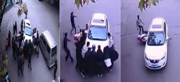 بالفيديو.. في مشهد إنساني 20 صينياً يرفعون سيارة من فوق امرأة