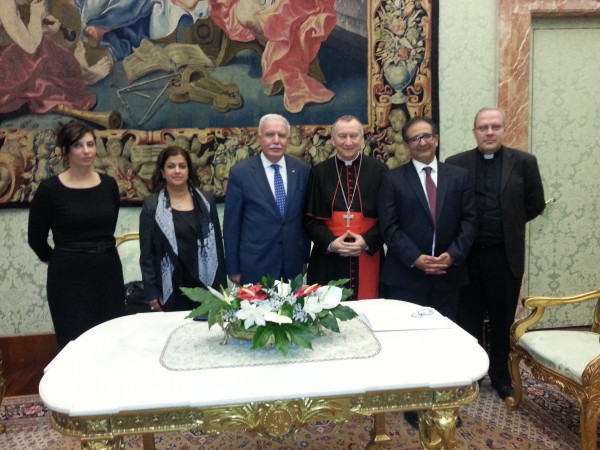 عيين رياض المالكي وزير خارجية دولة الفاتيكان الكاردينال بيترو بارولين، في صورة آخر المستجدات على صعيد التوجه الفلسطيني لمجلس الأمن، لاستصدار قرار يلزم إسرائيل للانسحاب من الأراضي الفلسطينية عام 1967.