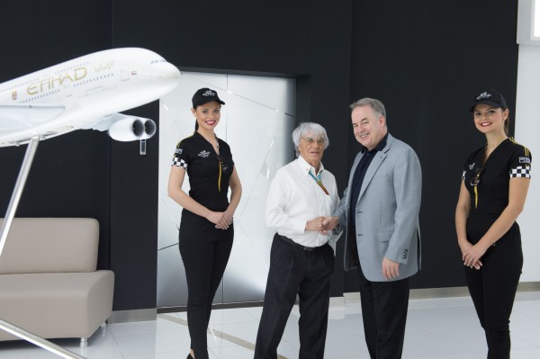 وقد أنهى إجراءات تمديد للشراكة السيد جيمس هوجن رئيس المجموعة والرئيس التنفيذي للاتحاد للطيران والسيد بيرني إيكلستون الرئيس التنفيذي لمجموعة شركات فورمولا 1 وذلك في مركز الإبداع التابع لشركة الاتحاد بأبوظبي.